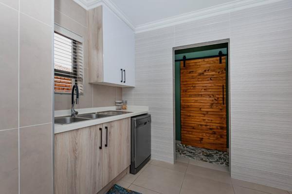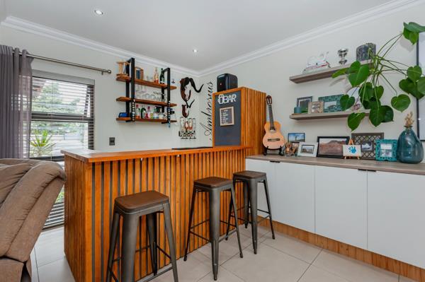 The residence features three comfortable bedrooms, offering private retreats for every family member. Two modern bathrooms serve the home, with one conveniently en-suite to the master bedroom, ensuring privacy and comfort. This home is equipped with 24-hour security, an access gate, an alarm system, electric fencing, and burglar bars, providing a secure living environment within a welcoming community.