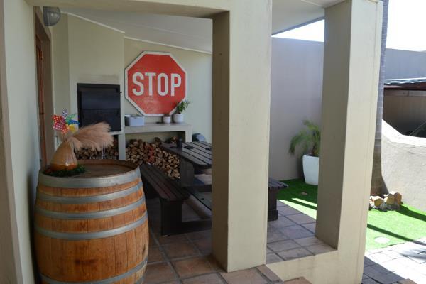 The front outside area offers a built-in braai and a stoep for entertaining your guests.
