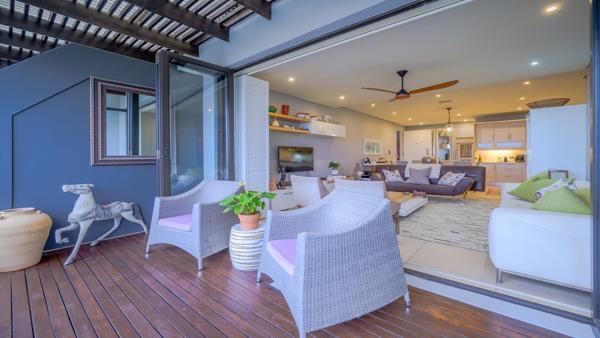 Designed for effortless entertaining and relaxed living, the apartment features a seamless open-plan layout. The stylish kitchen, dining area, and lounge flow beautifully through stack-back doors onto a balcony, where all three bedrooms also open out, each enjoying ocean views.