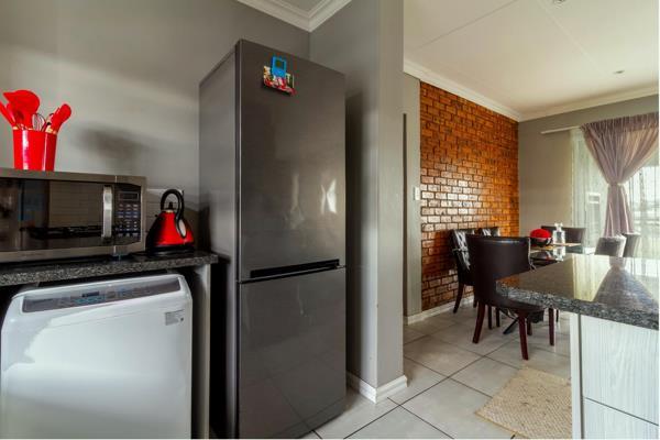 Completing the home are two modern bathrooms: a main en-suite with a shower, basin, and toilet, and a full family bathroom with a bath, shower, basin, and toilet. Additional features include 24-hour security with controlled access, CCTV and intercom system, a guardhouse with electric fencing, prepaid electricity, fibre-ready connectivity and two undercover parking bays with ample visitor parking. Please note, no pets are allowed.