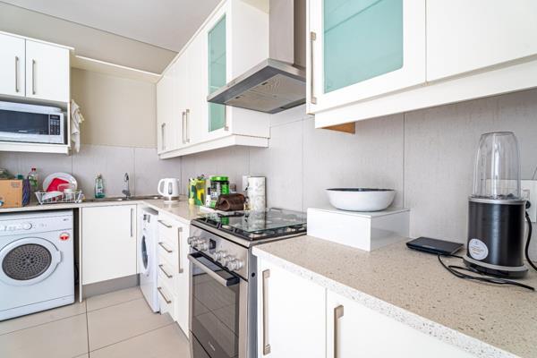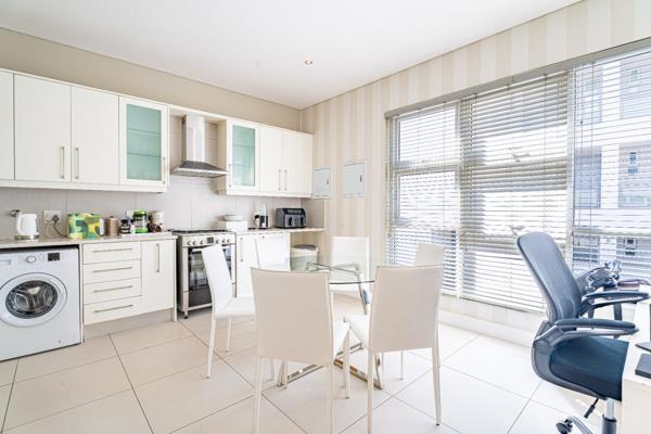 The contemporary kitchen features elegant Caesarstone tops, a free standing gas hob and oven, and space for three appliances, with ample room for a dining tableideal for both relaxed daily living and sophisticated entertaining.