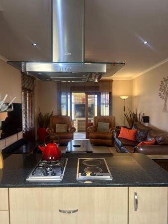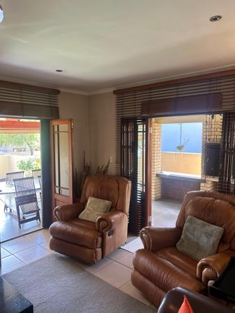 Ideal for entertaining, the home features a large wraparound patio with a dining area, separate seating area, and a built-in braai with lots of space for wood under the counter. It also has weather-proof roll-up blinds to keep the rain and sun out. The bedrooms are carpeted, while the rest of the home is tiled throughout.