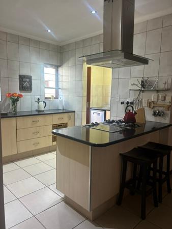 The home offers a well-designed kitchen with a separate scullery, a centre island with a 2-plate gas stove and a 2-plate hot plate, and a Defy oven. The spacious lounge and main bedroom each have an air conditioner for added comfort.