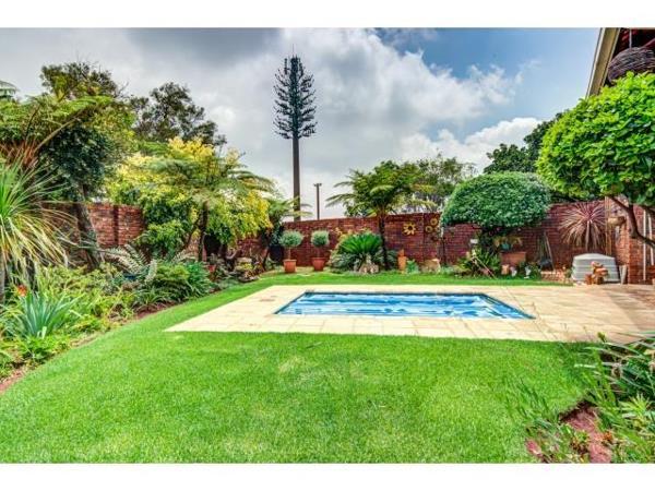 Step outside to a private oasis, where a meticulously maintained garden awaits. This lush outdoor space boasts mature landscaping, a neat lawn, and a refreshing small swimming pool, perfect for cooling off on warm days. A paved patio area, accessible via sliding glass doors, offers an ideal spot for outdoor dining or simply enjoying the tranquil surroundings. The property is pet-friendly, allowing your furry companions to enjoy the spacious garden, and its fully walled perimeter ensures privacy.