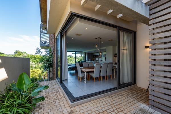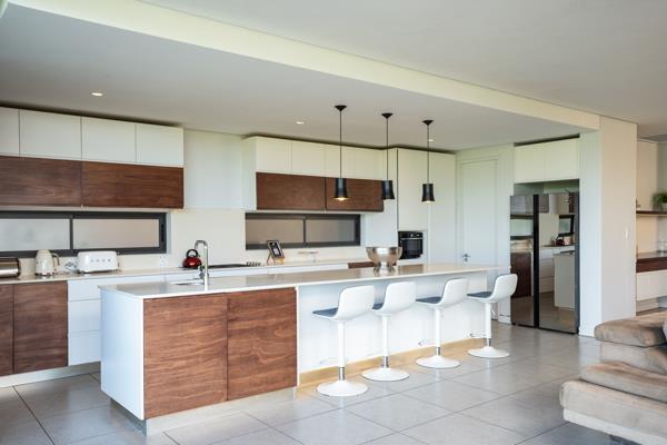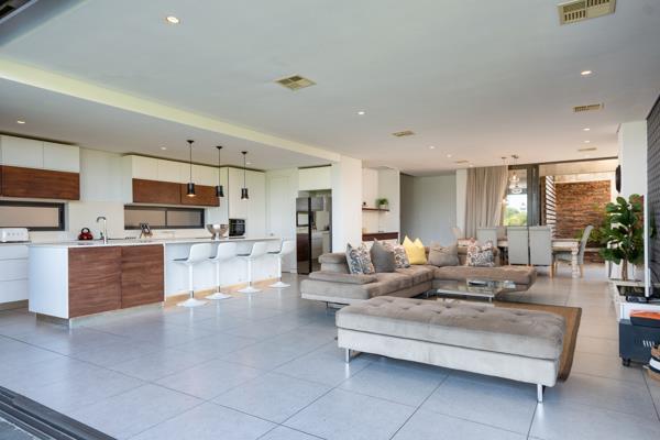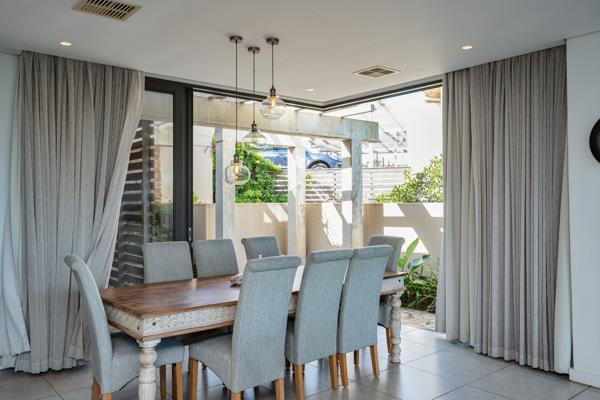 This is a beautifully furnished, sea-facing townhouse with crisp and clean interiors offering contemporary living within a naturally serene setting. The exceptional location is just south of The Capital Hotel and straddles a hill offering elevated ocean views. The home has impressive living and entertainment areas. The parking is at the entrance level, and the four bedrooms are together on the top floor. The lower ground floor reveals the spacious living, dining and entertainment areas with a large patio, gas braai and inviting pool. The kitchen offers an oven and gas hob, Caesarstone counter-tops and a separate scullery. Ducted air-conditioning is provided throughout.
