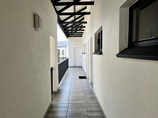This beautiful north facing top floor apartment has much to offer. Front door welcomes you into open plan kitchen with space for fridge and under counter washing machine and includes Defy 600 counter hob, under counter oven, extractor fan, Caesarstone counters and built in cupboards. Lounge presents high ceilings and sliding door onto well proportioned balcony with vista views. Main bedroom enjoys picture window inviting in morning sun, built in cupboards. Bathroom delivers with an extractor fan, large glass encased shower, medicine cabinet, toilet and wall hung basin. Second bedroom enjoys built in cupboards and sports smaller windows for extra privacy and security.