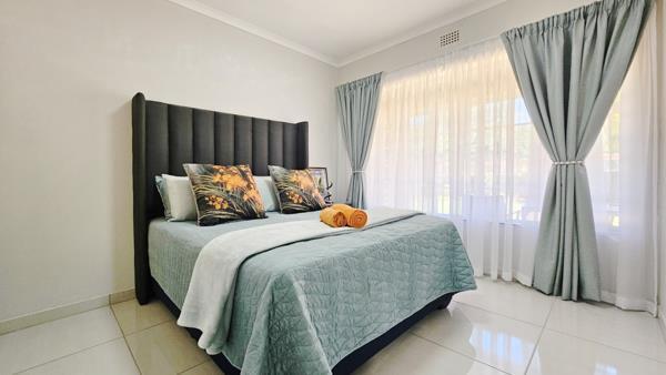 Accommodation flows beautifully, comprising large open-plan living areas, a modernised kitchen with plumbing points, three large bedrooms, and two bathrooms master en-suite.