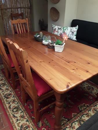 Unit 4 features spacious living areas. The light and bright kitchen has both great cupboard and worktop space. The large windows have been treated with a reflective film for privacy and keeping the apartment cooler in the summer months. Equipped with a dual function hob , both electric and gas and large electric oven. Large double door fridge and freezer. Microwave and other appliance. Separate scullery with washing machine and more cupboard space. The lounge is furnished with very comfortable sofa and day bed sofa, Smart TV 55, TV with surround sound Bar. The lounge opens up onto a lovely sunny and warm indoor patio over looking the garden and pool, furnished with Oregon pine dining room table and chairs and build in sofa. The second dining area is complimented with a fireplace and chill area for those winter nights. The kitchen, lounge. bathroom and dining areas are all tiled while the bedrooms and the passages are laminated. The main bedroom is spacious with smart tv, an extra large King size bed, dressing table, bedside tables and build in cupboards. The bedroom has large sliding windows overlooking a private courtyard garden area. The second bedroom is of a good size with sliding doors opening onto a pretty courtyard. The bedroom is furnished with Queen size bed. bedside tables, chest of drawers, wardrobe and a 32 LED Tv connected to the main tv. The bathroom is modern and boasts a lovely large shower. There are very large mirrors throughout the apartment. As well as wall panel heaters to keep the apartment warm during the colder months.
