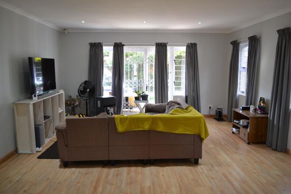 The living room has a sliding door that leads you to an undercover patio with built braai, perfect for a small gathering with friends and or family.