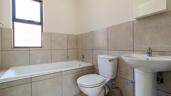 This modern 2-bedroom apartment offers comfortable living within a secure complex in Protea Glen, Soweto. The gated entrance with a security guardhouse ensures peace of mind. The complex features contemporary architectural styles, well-maintained grounds, and dedicated covered parking, creating an inviting first impression.
