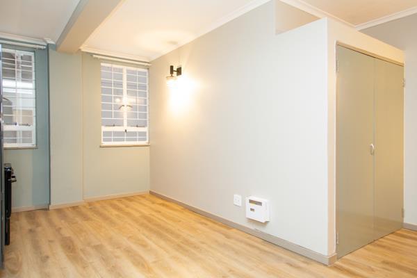 The apartment can accommodate three adults, has a neat kitchen with built-in cupboards and an en-suite bathroom. The rooms are spacious, and the bedroom also has built-in cupboards. Other features include: 24-hour security, biometric access, DStv connectivity, as well as prepaid electricity. Our friendly live-in building manager is there to assist with maintenance and service requests.