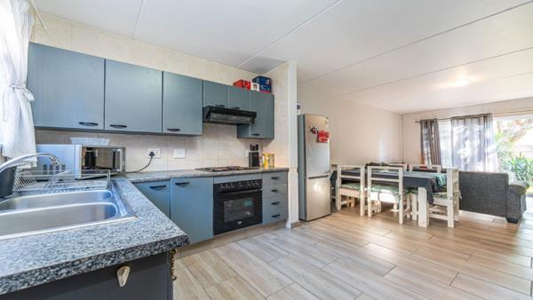 Unit offers 2 well sized bedrooms with full bathroom with shower, basin, toilet and bath upstairs. Downstairs we have open plan living area with kitchen, dining room and lounge. Sliding doors in lounge opening up to your own private garden. Carport with 2 cars and 2 open parking spaces. Back yard area for your small pets. Complex offers entertainment area with braai facilities and play area for kids.