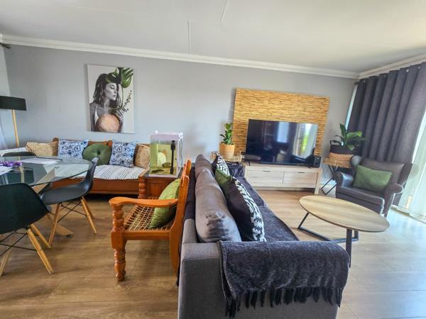 This immaculate townhouse offers refined living and breathtaking panoramic views. From the moment you enter the home welcomes you with a spacious open plan lounge and dining area that flows seamlessly onto a private patio, perfect for relaxing or entertaining while enjoying the scenery. The property features three well proportioned bedrooms and two bathrooms, including a main en suite. The modern kitchen is well appointed with ample cupboard space, granite countertops, an under counter oven and hob and a separate scullery with a washing machine connection.