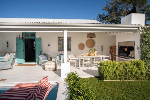 The homes three wings embrace a central courtyard, where a sun-drenched swimming pool, built-in braai, and landscaped patio create an idyllic outdoor space thats perfect for entertaining or quiet reflection. The courtyard layout not only enhances the homes sense of flow and openness but also provides excellent shelter from the wind, ensuring year-round enjoyment.