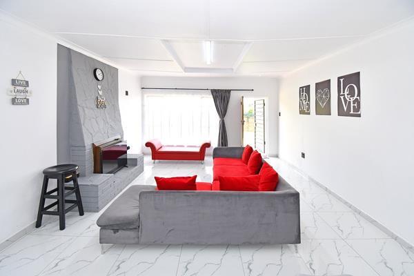 Discover this modern 1-bedroom, 1-bathroom dual living unit available for rent in Farrarmere, Benoni. Spanning approx 90 sqm, this inviting residence features a bright and spacious open-plan layout, seamlessly connecting the living, dining, and kitchen areas. The interior boasts clean white walls and contemporary marble-patterned tile flooring throughout, creating a fresh and airy ambiance.