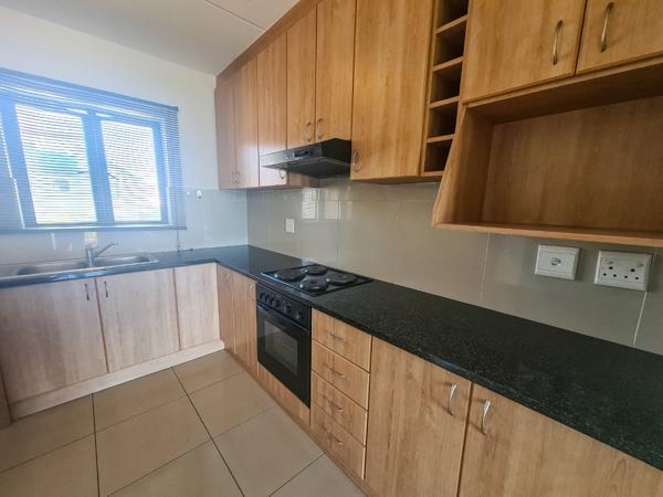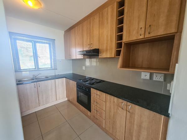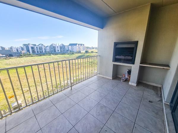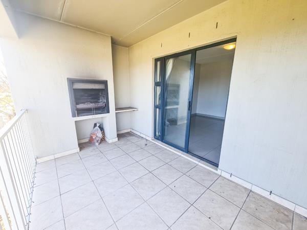 This spacious and light apartment offers a big open-plan living area, functional kitchen, two large bedrooms, one full bathroom, a covered balcony with built-in braai well as ample cupboard space.