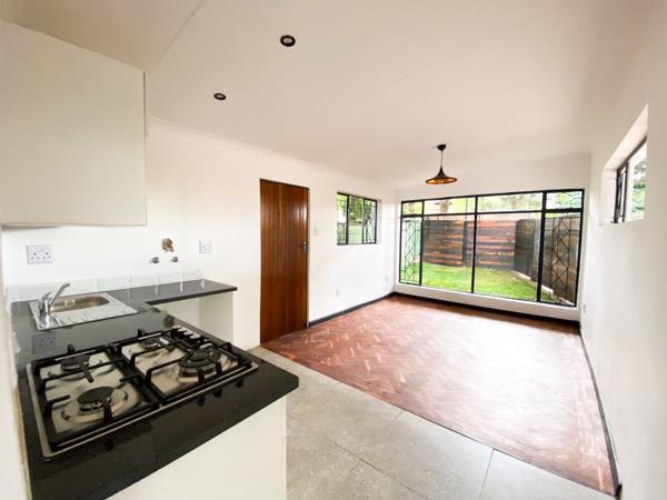 It is a gorgeous, pet-friendly apartment with a medium-sized cottage garden perfect for small dog. It has parquet floors, gorgeous Italian Tiles, long granite counters, electric fencing, modern kitchen with electric hob, a classic bathroom with rain water shower head and a bathtub. It also has built-in cupboards in the bedroom. Unfurnished.
