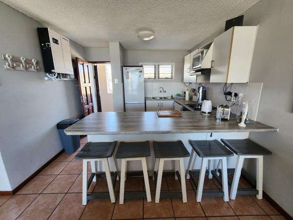 The kitchen is fully equipped for self-catering with a fridge-freezer, stove and oven, microwave, kettle, toaster, dishwasher. The complex has a laundry facility or there is a Laundromat in the same street. The lounge contains 2 couches, 1 is a sleeper coach, a coffee table and a flat-screen TV with a huge selection of Streaming Device Mi-Box channels, DSTV and thousands of movies and series Breakfast Nook with 5 bar chairs. Sliding doors open to a balcony with outdoor dining furniture 4chairs and a gas braai. The view is amazing where you can sit and relax and see breaker views. Just across a waterpark to enjoy! Seasonally.