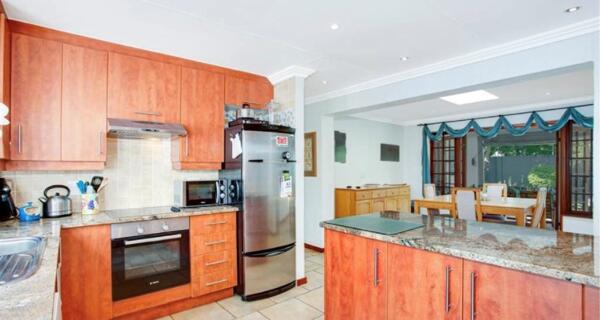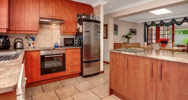 This gorgeous 3 Bedroom, 3 Bathroom cluster home has a large entrance hall which leads into the living area, there is a separate dining area and kitchen. The dining area opens up directly onto the patio which overlooks the sparkling solar heated swimming pool and an established garden. The lounge has a lovely wooden beam ceiling and a fireplace.