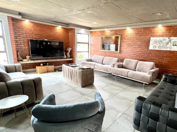 Flowing seamlessly from the kitchen is a generous living area that opens up to a delightful entertainment space. This area boasts a built-in bar with modern lighting features, perfect for hosting gatherings and creating memorable moments. The built-in braai area, currently used as a dining area, enjoys an abundance of natural light, creating a warm and inviting atmosphere. On the ground floor, you''ll find a convenient wash closet and an additional spacious bedroom, providing flexible options for family or guests.