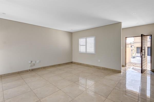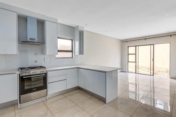 This elegant 3-bedroom, 2.5-bathroom residence is designed for both comfort and style, offering ample natural light throughout and a seamless, free-flowing layout that effortlessly connects the living, dining, and kitchen areas perfect for modern family living and entertaining alike. The open-plan kitchen is both stylish and functional, featuring a gas hob and a separate scullery with a double wash-up basin and space for two appliances, ensuring practicality without compromising on design.