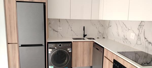 Experience luxury living in this exquisite 2-bedroom, first-floor apartment mere metres from a tranquil, crystal-clear lagoon. The Scandinavian-style kitchen is equipped with eco-friendly appliances, including a fridge, washing machinedryer combo, and dishwasher. The apartment features fibre and DStv readiness, along with prepaid water and electricity meters. It offers two covered parking bays and ample visitor parking.