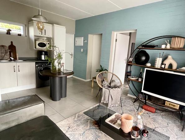 The kitchen is finished with ample cupboard space and accommodates appliances with ease. The spacious bedroom features built in cupboards,