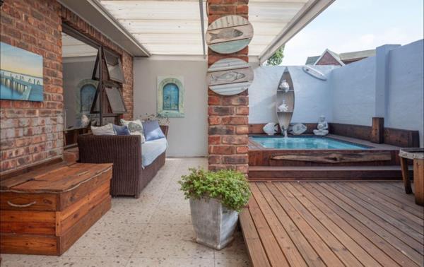 Step outside to discover a private oasis, complete with a refreshing pool set on a deck perfect for warm summer days. The inside entertainment area also includes a built-in braai, making al fresco dining a delight. With two secure garages and additional parking spaces, convenience is assured. This pet-friendly property truly embraces the coastal lifestyle.
