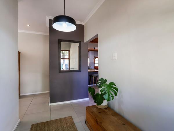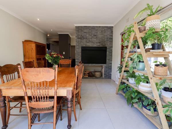 Family home in a peaceful neighbourhood with all that you need.. This feel good home has a lovely flow from the front door. The open plan kitchen and living area has knotty pine ceilings and a large breakfast bar, ideal to sit at while watching the chef in the home or enjoying your meal while being entertained by something on TV. The scullery is tucked away slightly and has direct access to the garage perfect for bringing in all those groceries on a wet winter''s day. The indoor braai area doubles as a dining room, making it ideal for hosting family gatherings or casual dinners with friends. Its convenient outdoor access allows for seamless entertaining during summer evenings. There are 3 spacious bedrooms, one of which is extra-large and ideal for extra playroom space or living area should you have an older child with outdoor access to an entertainment area. The outdoor undercover area is currently where a portable swimming pool is kept for young children to enjoy. The family bathroom has a bath and a guest toilet, with the main bedroom having an ensuite bathroom with shower. The private back garden has large established trees as well as a water feature offers a tranquil retreat for relaxing afternoons in the shade.
