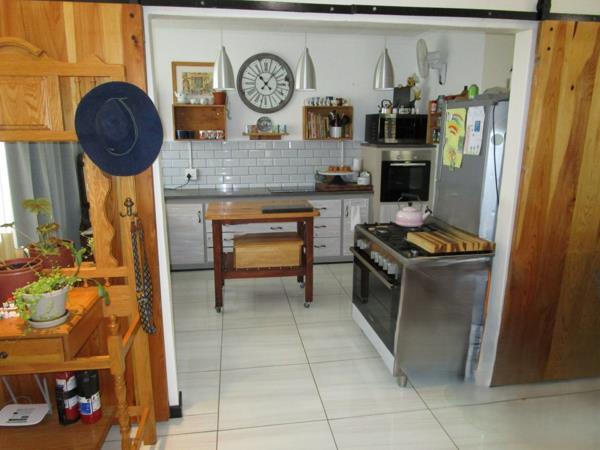At the front door one enters into the Open Plan Living Area, leading straight into a Lovely, Sunny Kitchen. The open plan living area also offers a security gate at the sliding door, leading to the Outside Entertainment area and Garden.