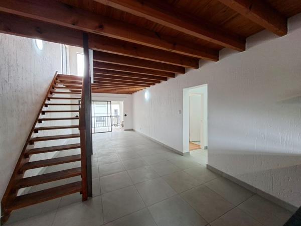 Upstairs, the loft provides a versatile space ideal as a second lounge, work from home area, or entertainment zone. This level features wooden flooring and opens onto a second open patio with a built in braai. A third bathroom with a shower is also located upstairs.