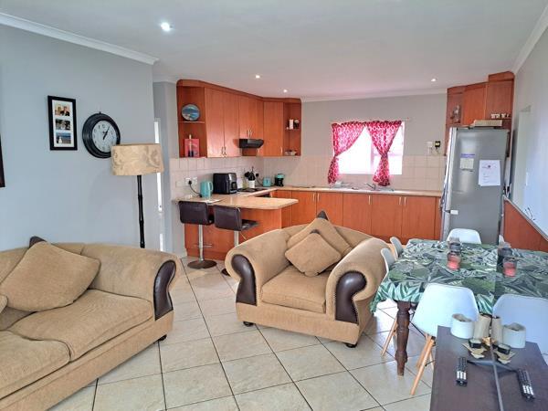 This charming residential property features three comfortable bedrooms and two modern bathrooms, including a private en-suite for the main bedroom, ensuring convenience and privacy. The home presents an open-plan layout, seamlessly connecting the well-appointed kitchen, dining and lounge. This space connects with a covered braai patio, perfect for both everyday living, entertaining and relaxation. Outdoor living is enhanced by a private garden, fully walled and perfect for kids and their pets as well as your gardening projects.