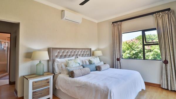 This gorgeous double story house is located close to the South gate of the White River Country Estate, right next to the private school Uplands. The kitchen has recently been renovated and is an absolute dream. Stunning choice of cabinetry, high end fittings and the best of the absolute best. The kitchen leads onto a great sunroom which has sliding folding doors which open up to the veranda. There is a double sided fireplace which faces both the kitchen as well as the open plan double volume living area. The space is generous and full of light, and together with American shutters and European oak paneling accent walls, has been decorated to perfection. Three generous bedrooms upstairs, as well as a lounge, make for a perfect family home set up. The main bedroom, with air conditioner, looks over the views of the country estate and has a veranda perfect for sundowners. There is a walk in cupboard with plenty of space and the full bathroom is en suite.