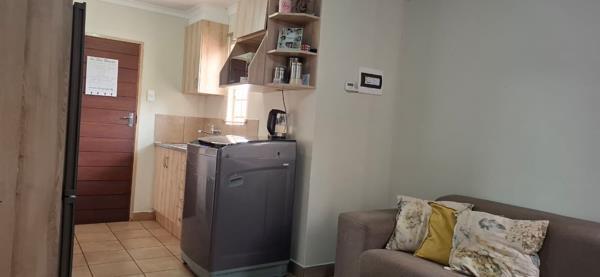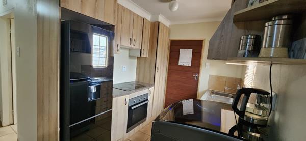 Discover comfortable suburban living in this inviting three bedroom, two bathroom residence located in the desirable Sky City area of Alberton. The interior boasts a contemporary open plan layout, seamlessly connecting the living space with a modern kitchen. This functional kitchen features stylish light wood look cabinetry, granite style countertops and is equipped with built-in appliances including an oven, hob and a sleek black double door refrigerator with a dispenser. Tiled flooring extends throughout the main living areas, ensuring both durability and easy maintenance. A washing machine is conveniently integrated into the kitchen, adding to the home''s practical appeal.