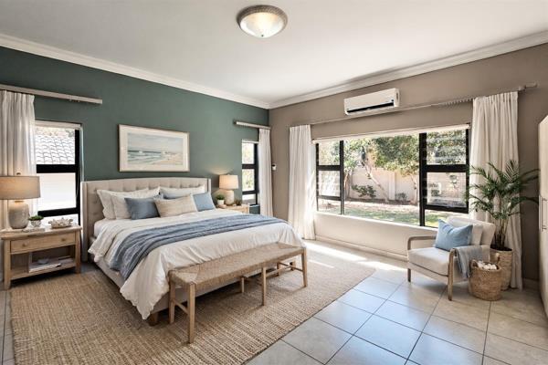 The entertainment area includes a built-in indoor braai, while the backyard offers a separate boma area, ideal for relaxed evenings with friends and family. Both the front and back gardens are pet- and child-friendly, providing safe outdoor space for families.