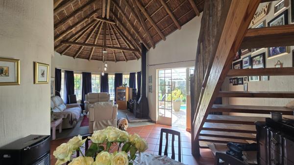 Situated in the leafy, sought-after suburb of Randpark Ridge, close to both the primary and high schools, this beautiful home is an entertainer's dream. Thatched with gorgeous, high ceilings keep it cool in summer a central fireplace warms the whole home in winter. The open-plan kitchen with separate scullery & laundry flows into the downstairs lounge and dining room, which opens onto a large covered patio perfect for large gatherings. Paved courtyard with entrance & exit gates makes maintenance a breeze and provides ample parking for extra cars, caravans or boats. Walking distance to shops and local park. 2 large Wendy houses perfect for a work-from-home office or storage room. All bedrooms well-sized. Fourth bedroom upstairs is large with its own private covered balcony. Downstairs guest loo accessible from either outside or inside the house.