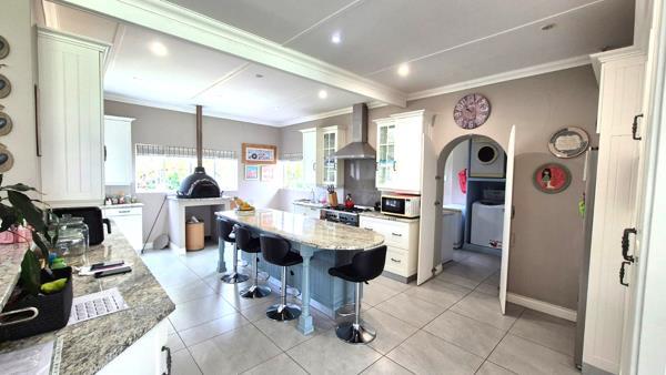 The heart of the home is the spacious open-plan living area, seamlessly combining the lounge, dining room, and kitchenperfect for relaxed family living and entertaining. The beautiful modern kitchen features white built-in cupboards, granite countertops, a gas stove, stainless steel extractor fan, and a unique pizza oven for memorable family gatherings.