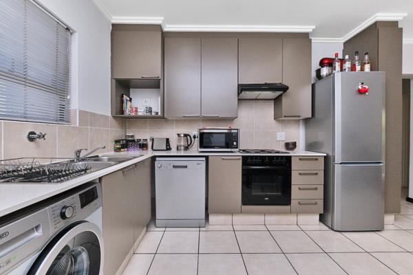 Discover modern living in this inviting 2-bedroom, 1-bathroom apartment, spanning 69 square meters, located in the sought-after Lonehill area of Sandton. The heart of this home is its open-plan design, seamlessly connecting the lounge, dining area, and a contemporary kitchen. The kitchen boasts neutral-toned cabinetry, light countertops, tiled flooring, and integrated appliances including an oven, hob, extractor fan, dishwasher, and washing machine, ensuring a sleek and functional space. Recessed lighting enhances the clean aesthetic, while sliding doors from the living area open onto a private balcony.