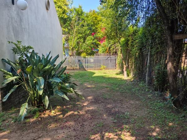 The lounge and dining area leads out onto a covered balcony with a built-in braai area and spacious garden, ideal for entertainment.