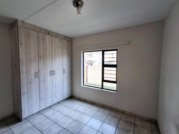 Discover this inviting 2-bedroom, 1-bathroom residence located in a suburban complex in Union, Germiston. Spanning 72 square meters, this home offers a modern and functional layout designed for comfortable living. The open-plan living area, featuring contemporary grey tiled flooring and neutral walls, seamlessly connects to a stylish kitchen, creating an ideal space for relaxation and entertaining. Large sliding glass doors, fitted with security bars, allow natural light to flood the interior and provide access to a private patio.