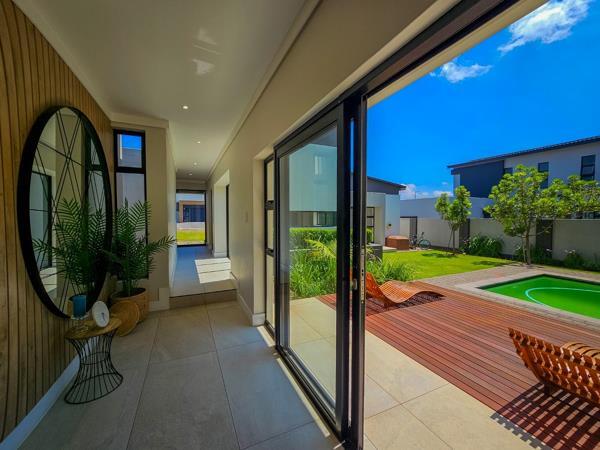 This stylish and modern 5-bedroom family home, located on a serene greenbelt, offers a perfect blend of luxury and functionality. Designed with an entertainers dream layout, it features spacious open-plan living areas that seamlessly flow to outdoor patios and a beautiful garden. Nestled in a sought-after security estate, this home provides both privacy and convenience, making it ideal for ultimate family living.