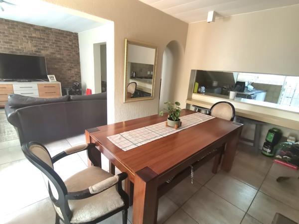 Experience easy living in this well kept townhouse set in Florida Park Roodepoort. The home offers a bright open plan dining and family room with tiled floors, flowing into a neat kitchen that features built in cupboards and a breakfast nook. There are three tiled bedrooms all with built in cupboards, and two bathrooms including an en suite in the main, ensuring comfortable, practical spaces for family life. A single covered garage and secure visitors parking add convenience, while the pet friendly policy is not in effect for this unit. The garden is maintained by garden services and the immaculate grounds create a welcoming exterior, and the communal gunite pool with fencing and auto cleaning equipment invites easy summer days and relaxed entertaining. Security is a clear plus with a security gate, burglar bars and 24 hour access. This residence also includes a charming outdoor area with braai opportunities and a covered patio that flows from the living spaces, ideal for alfresco meals and relaxed gatherings. Positioned within a secure complex, it is a practical option for families seeking a comfortable home that blends everyday utility with a warm, inviting atmosphere.