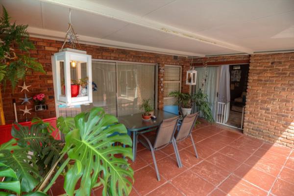 Step into comfort and space with this well-appointed family home, perfectly situated in a sought-after enclosed area offering added peace of mind. The main house boasts 3 generously sized bedrooms with built-in cupboards and 2 beautifully renovated bathrooms, including a main en-suite. Both bathrooms are fitted with a bath and shower for added convenience. The heart of the home features an open plan tiled dining area and a modern kitchen complete with a breakfast counter, ample cupboard space, an eye-level oven, and a separate scullerylaundry combo. Additional living spaces include a cosy carpeted lounge, a carpeted study ideal for working from home, and a tiled family room with a built-in braaiperfect for entertaining.