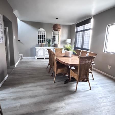 Accommodation comprises three well-appointed bedrooms and 2.5 bathrooms, including a convenient guest toilet. Practical amenities include a dedicated laundry room with a drying yard, ensuring everyday tasks are effortless. The property benefits from two secure garages, an access gate, burglar bars, security gates, and 24-hour security, providing peace of mind. Pets are also welcome, making this a truly inclusive home.