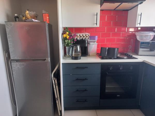The kitchen is simple and stylish, fitted with ample cupboard space, an electric hob and oven, and designed to make cooking and cleaning both practical and efficient.