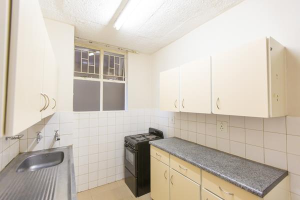 The spacious apartment can accommodate four adults, has a neat kitchen and an en-suite bathroom. Both the kitchen and bedroom have built-in cupboards. Other features include: 24-hour security, DStv connectivity, parking subject to availability as well as prepaid electricity. Our friendly live-in building manager is there to assist with maintenance and service requests.