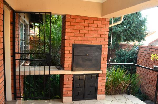 Step inside to an inviting open-plan layout that seamlessly connects the living spaces. The well-appointed kitchen features a practical pantry, flowing effortlessly into the dining area and a spacious lounge, ideal for both relaxation and entertaining. A family TV room adds versatility. Sliding doors lead to a private patio, complete with a built-in braai and an awning, perfect for outdoor dining and enjoying the tranquil garden, which benefits from an irrigation system. Weekly garden services are included in the levy.