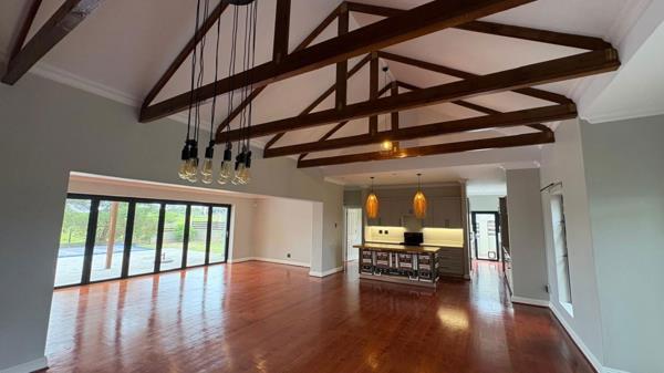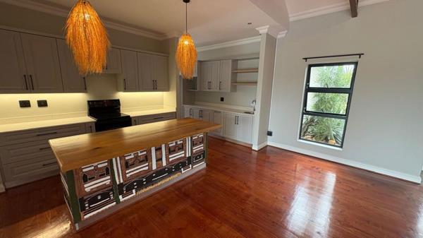 Each bedroom is a carefully curated haven with full-length built-in cupboards, and the bathrooms are sheer opulence with high-end plumbware and finishes. The incredible versatility of the property becomes even more apparent when you consider that one wing has been carefully adapted to function as a self-contained flat. Complete with a modern kitchen, lounge, bedroom and bathroom, the total amounts to four bedrooms and three bathrooms, ideal for an extended family, guests, generating an income, or providing a chic work-from-home suite.