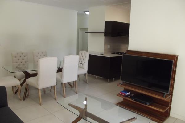 This first floor modern apartment has 3 bedrooms, 2 bathrooms main en-suite, modern kitchen with major appliances and open plan living areas. The hob is gas and electricity is prepaid. There is 24hr access controlled security as well as a clubhouse with pool, gym, braai, boma and jungle gym areas along the green belt.