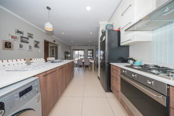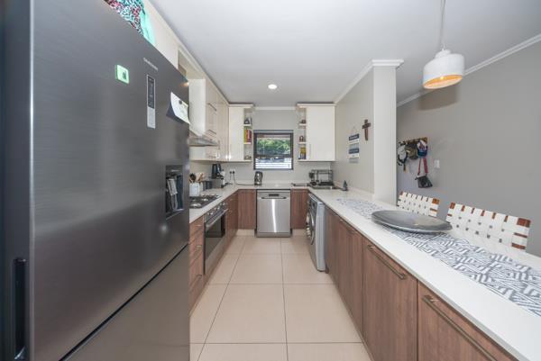 The living area extends effortlessly onto a sun filled covered balcony that becomes an extension of the home itself. Fitted with built in cupboards and a built in braai, this inviting outdoor space is perfect for morning coffee, quiet evenings or hosting friends in a setting that feels both private and elevated.